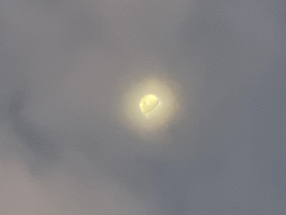 - "A highly luminous, crescent-shaped object, possibly a celestial body, emits a concentrated yellowish-white light from its core, surrounded by a distinct circular halo of diffused light" by FM-70leH3, licensed under CC BY 4.0