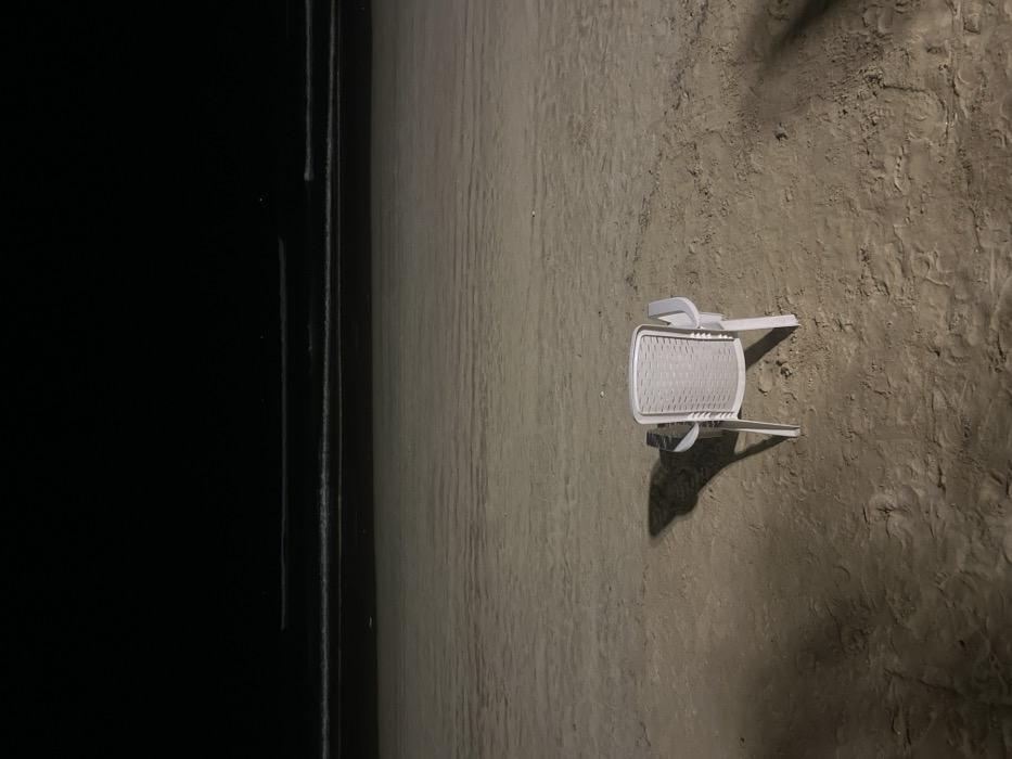 - "A white plastic chair rests on a sandy beach, casting a long shadow" by FM-jkVWj2, licensed under CC BY 4.0