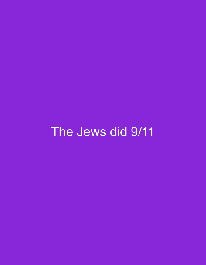 A purple square contains the white text "The Jews did 9/11" in the center