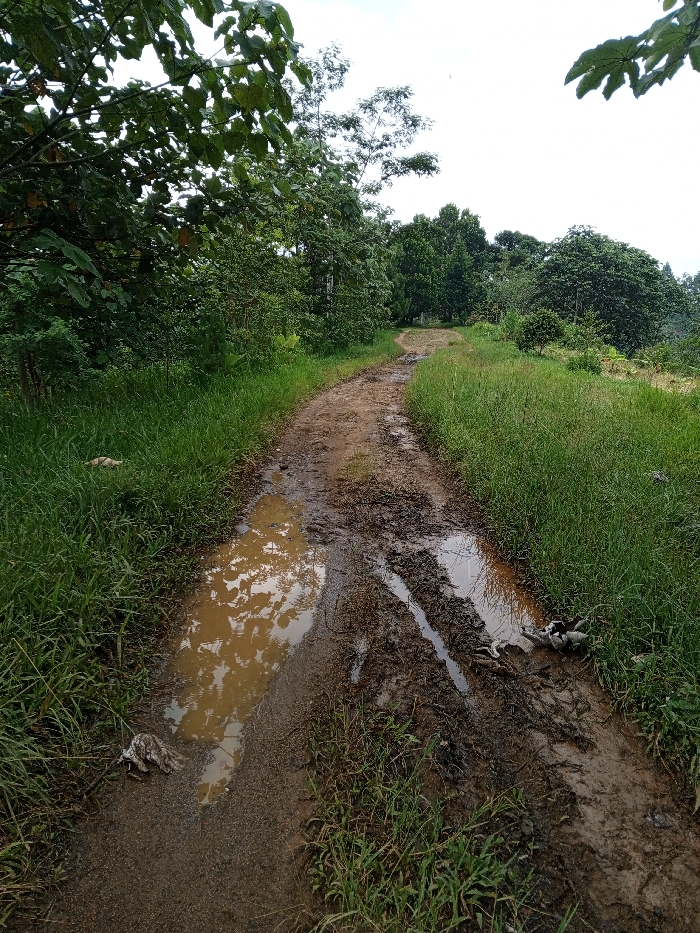 - "A muddy, unpaved dirt path in Thotagamuwa, Sri Lanka, is visible, winding through lush green grass and dense tropical foliage under an overcast sky" by FM-LzX3E2, licensed under CC BY 4.0