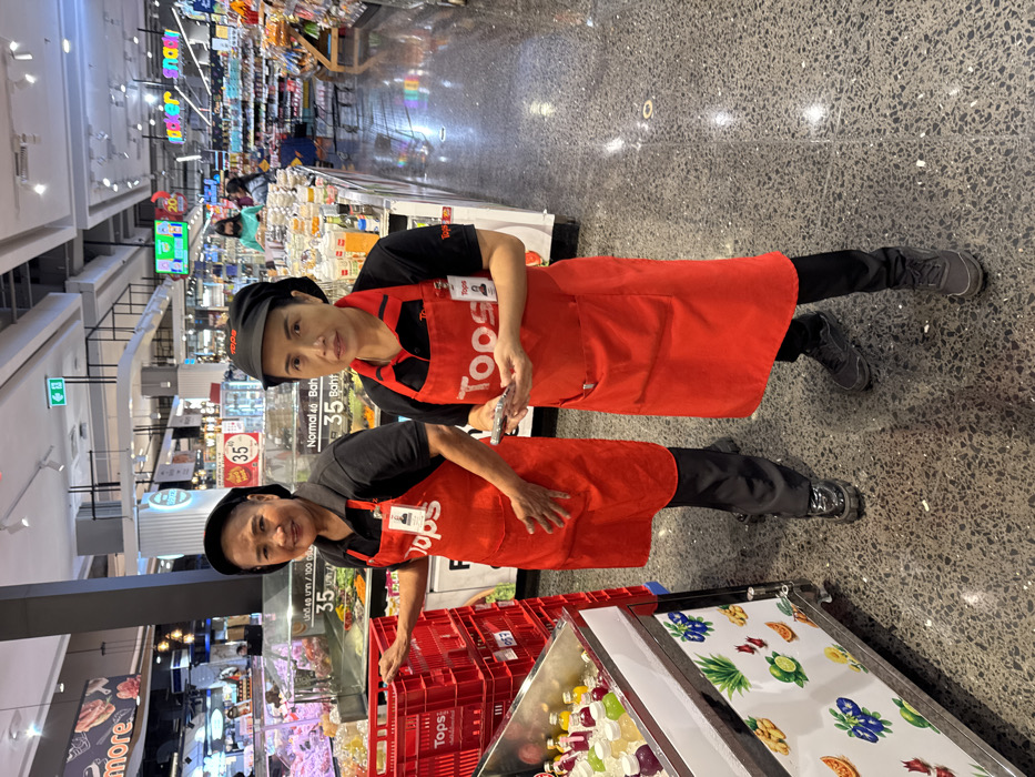The image depicts an interior scene within a Tops supermarket in Wichit, Thailand