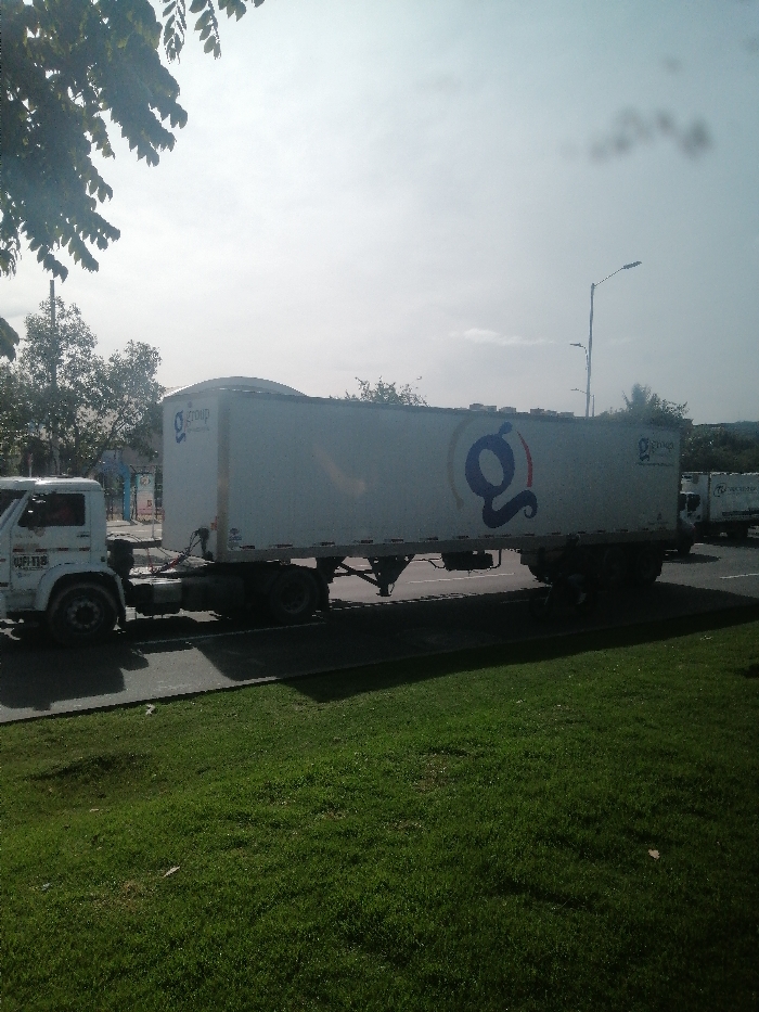The image captures a roadside or industrial area in Bogota, Colombia, on an overcast day