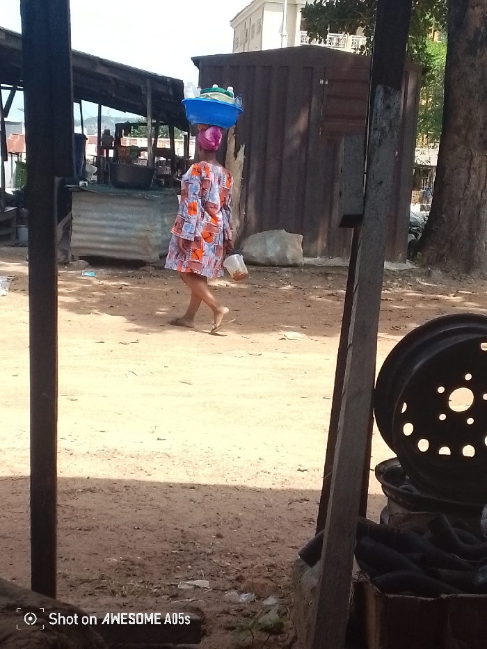 The image captures an outdoor scene in Zango-ndaji, Nigeria, under clear daylight
