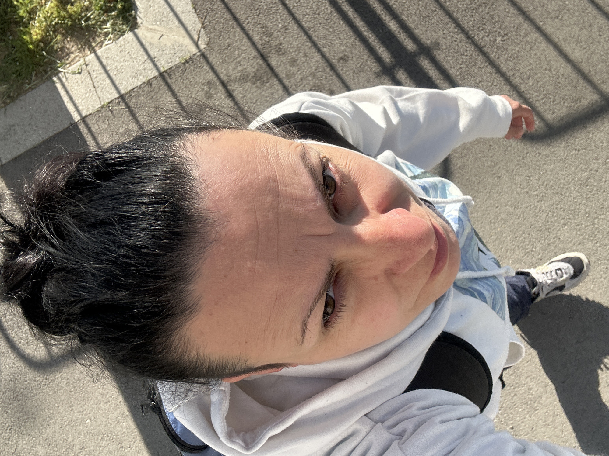 - "A high-angle, self-portrait of a person with dark hair pulled back in a bun" by FM-wpxuq1, licensed under CC BY 4.0