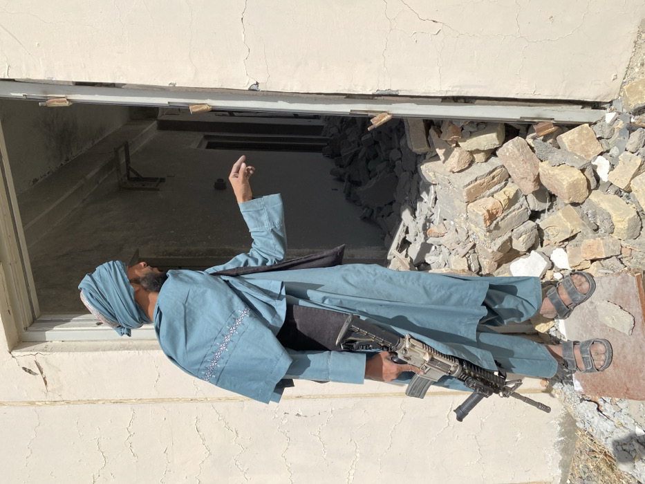 - "An adult male stands partially within a doorway of a damaged building in Mandisar, Afghanistan, under bright daylight" by FM-B5wmg2, licensed under CC BY 4.0