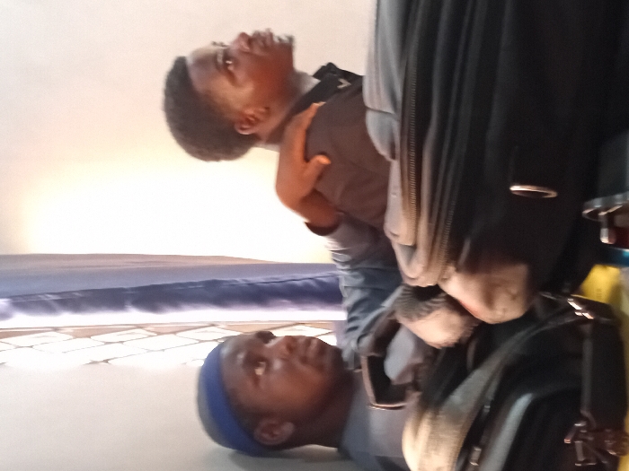 The image displays two males seated indoors in Minna, Nigeria