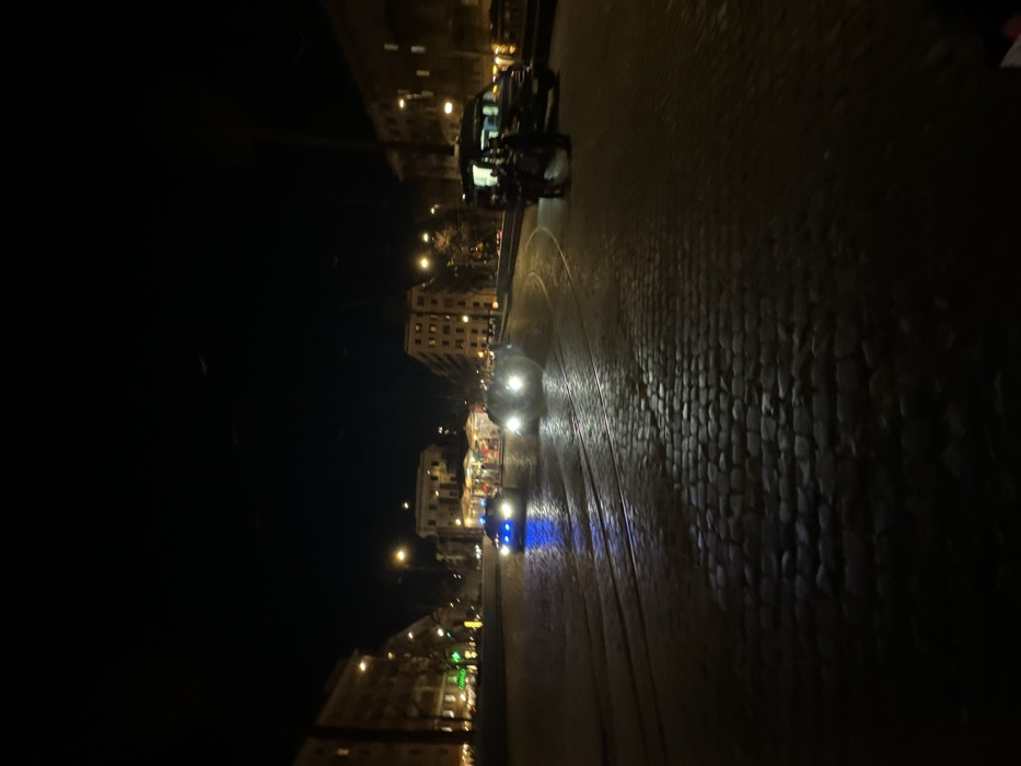 - "A nighttime cityscape with buildings lining a wet cobblestone street" by FM-n6yWE2, licensed under CC BY 4.0