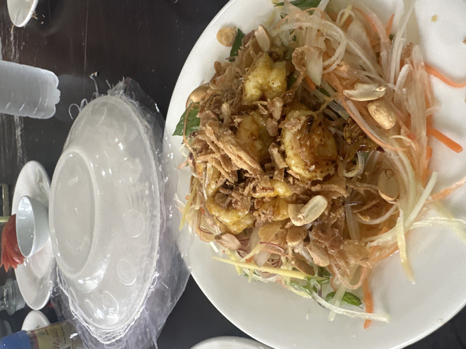 - "A white plate holds a vibrant salad with shrimp, shredded carrots, onions, peanuts, and crispy fried toppings" by FM-S4vcm1, licensed under CC BY 4.0