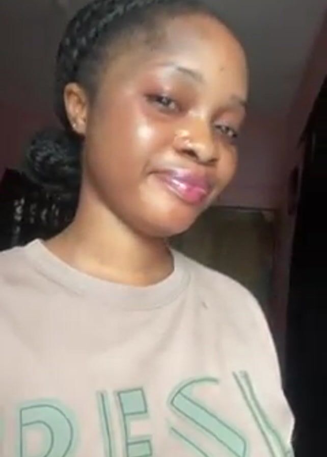 A young, brown-skinned woman with her hair braided and pulled back is the sole subject of this video
