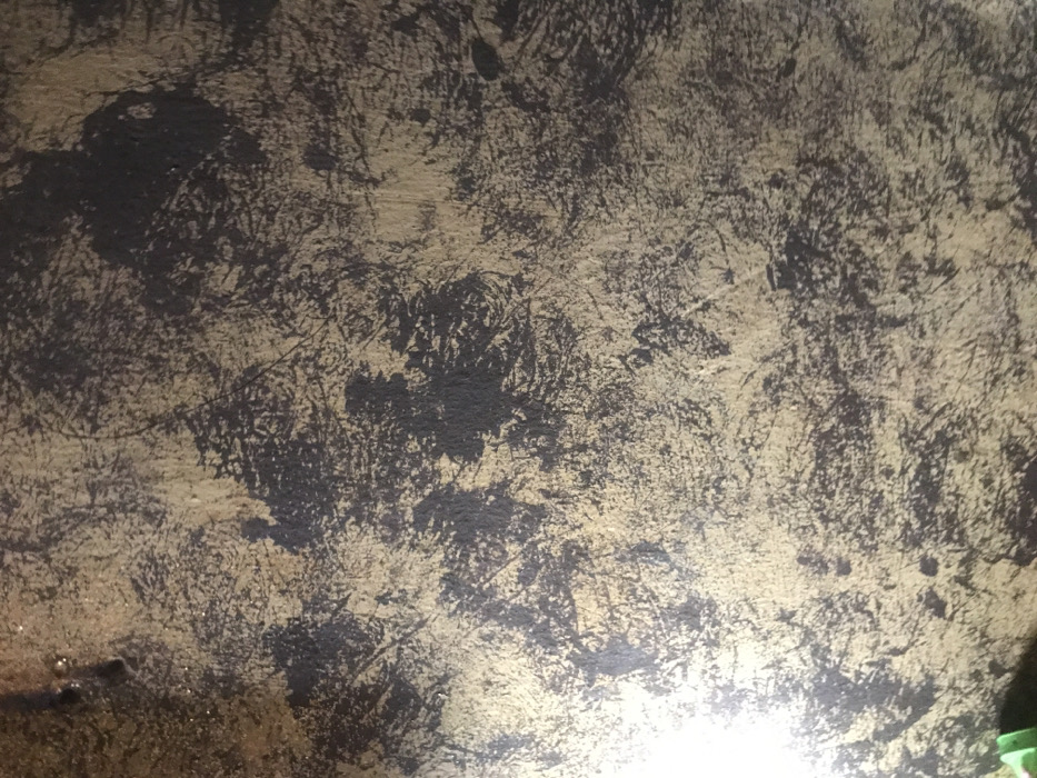 The image displays an abstract, textured surface characterized by a light tan or beige background extensively overlaid with irregular, dark brown to black markings