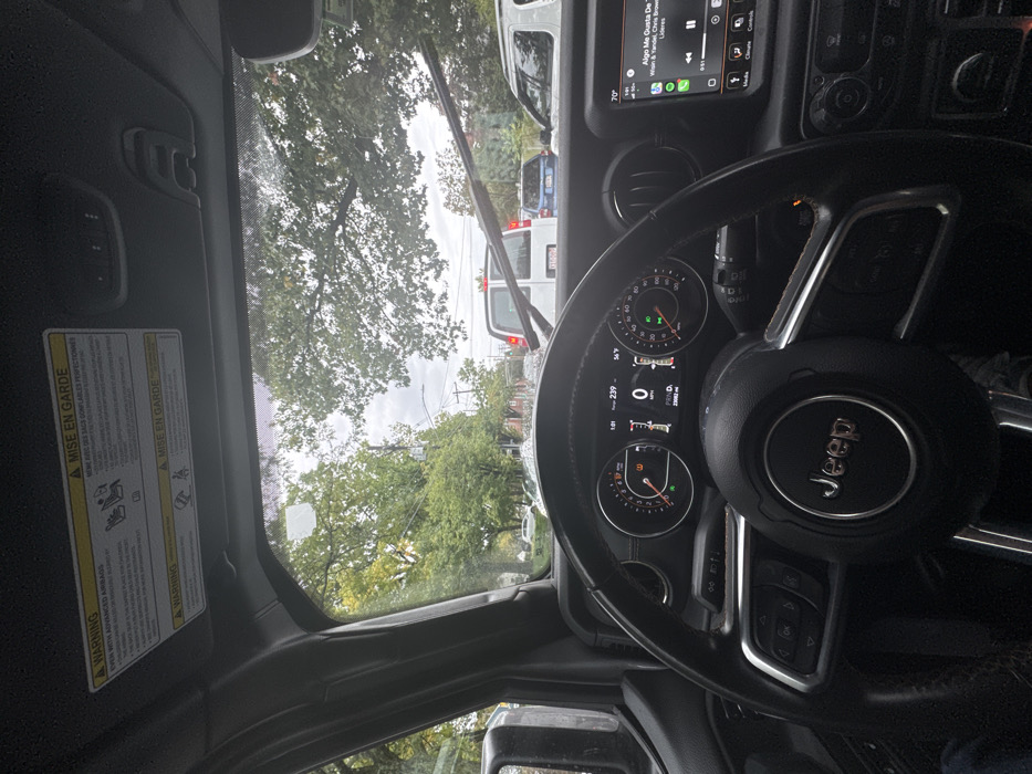 The image provides a driver's-eye view from within a black Jeep vehicle, stationary on a street in Newton, United States