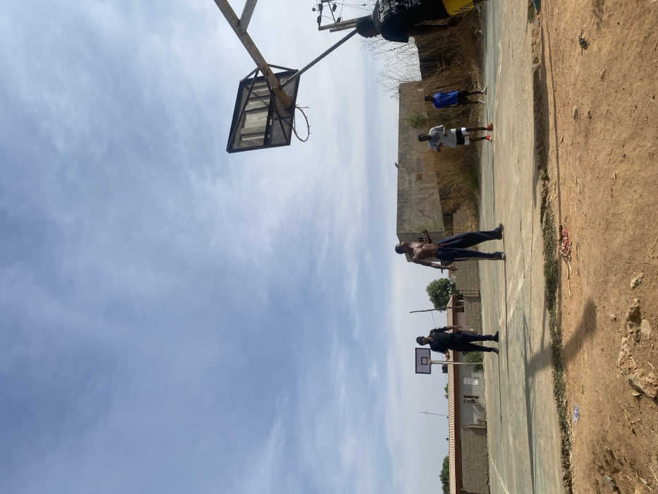 - "This image depicts an outdoor basketball court in Narayi, Nigeria, under a clear, bright blue sky with scattered white clouds" by FM-dWjv82, licensed under CC BY 4.0