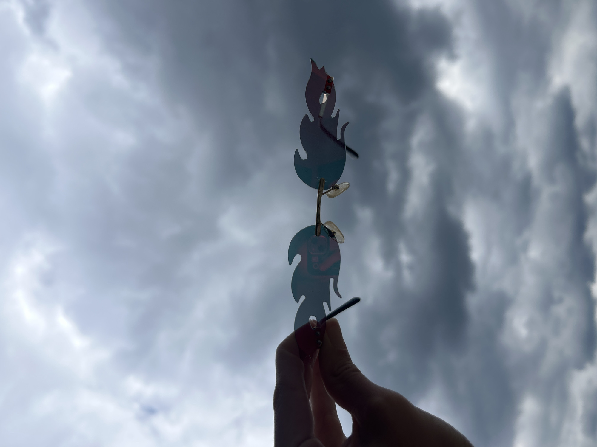 - "A hand holds a metal wind chime against a cloudy sky" by FM-0v64J2, licensed under CC BY 4.0