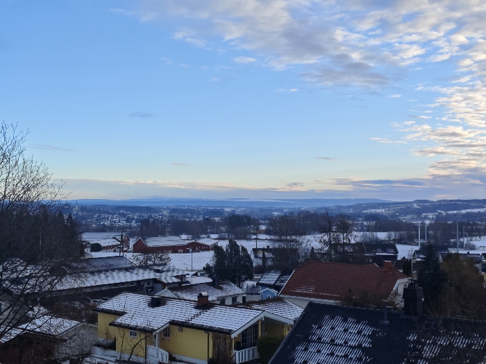 - "This image presents an elevated, wide-angle winter landscape of Hamar, Norway, observed under a partially cloudy sky displaying gradients of light blue and white" by FM-mgiLz2, licensed under CC BY 4.0