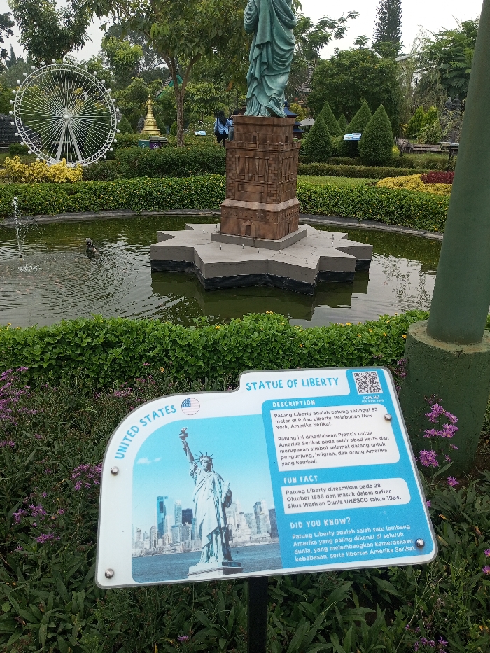 - "The image displays a miniature replica of the Statue of Liberty situated within a landscaped park in Ciherang, Indonesia" by FM-OkGy82, licensed under CC BY 4.0