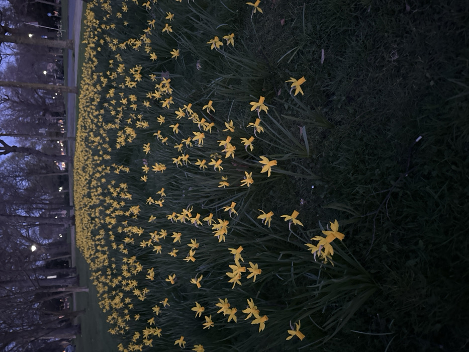 - "The image displays a wide field of blooming yellow daffodils (Narcissus) covering a grassy area in a public park" by FM-cmwts1, licensed under CC BY 4.0