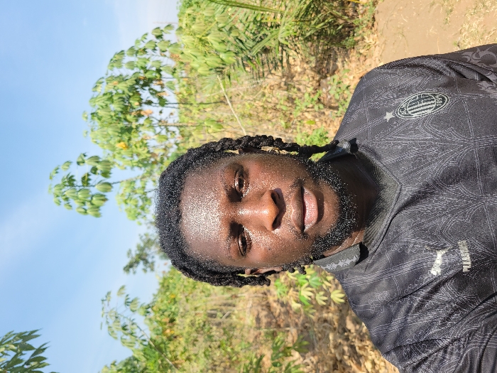 An adult male, with dark skin, braided hair, and a full beard, stands facing the camera in Markurdi, Nigeria