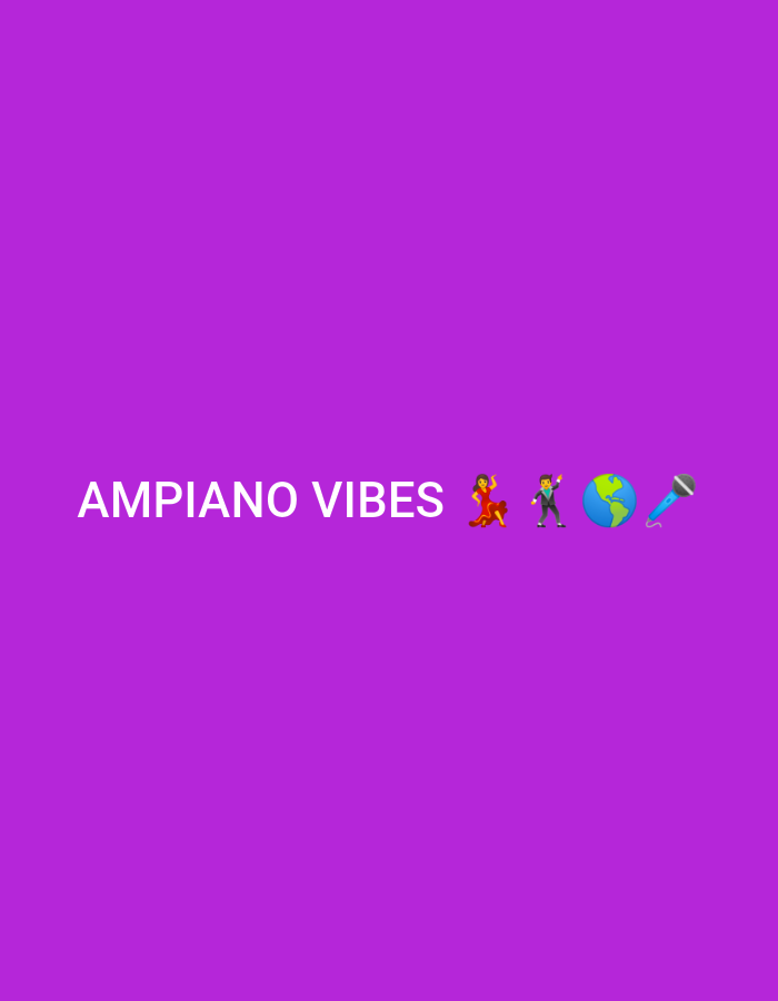 The image has a solid purple background. In the center, there is the white text "AMPIANO VIBES" followed by the following emojis: a woman dancing, a man dancing, a globe, and a microphone.
