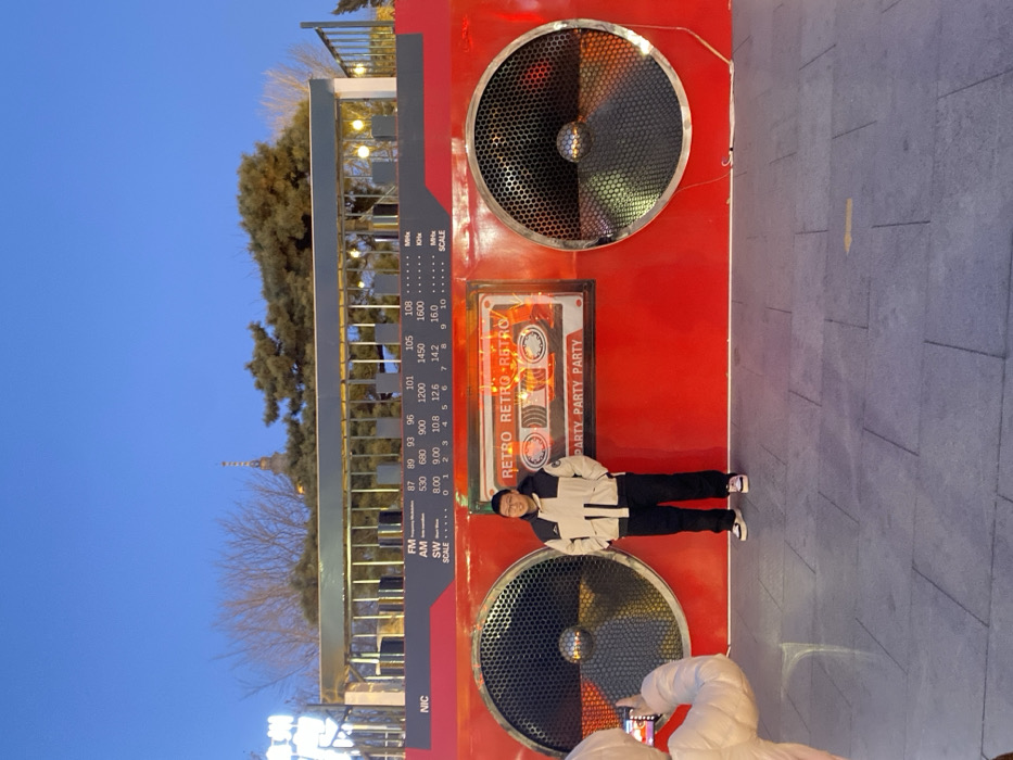 - "An outdoor scene captured at dusk or early night in Jinzhou Guta Park, Jinzhou, China, features a large, red, retro-themed boombox installation" by FM-7sf2h2, licensed under CC BY 4.0