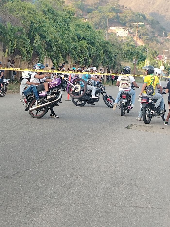 - "A group of motorcyclists perform stunts on a road, with some doing wheelies" by FM-qNIlA2, licensed under CC BY 4.0