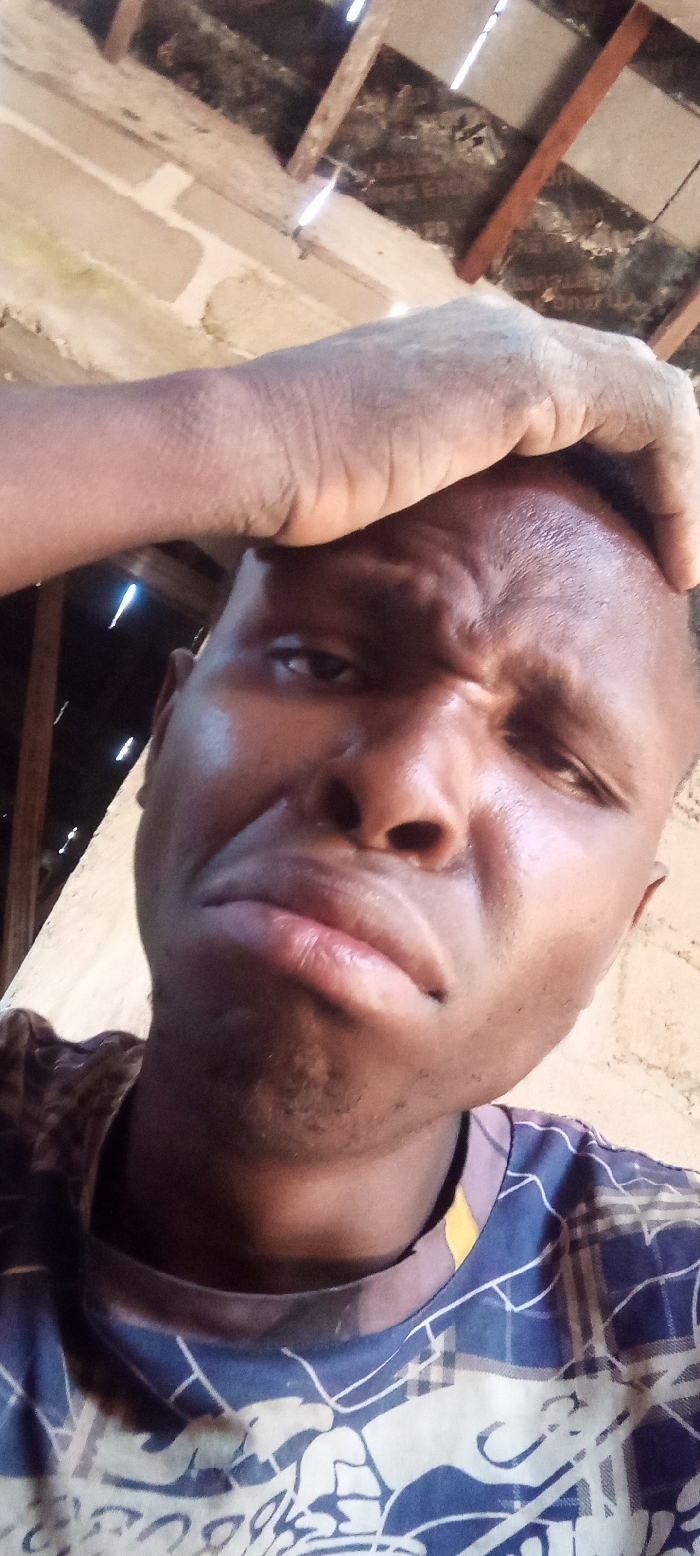 The image captures a close-up, chest-up view of a dark-complexioned adult male, located indoors in Unguwar Rimi, Nigeria