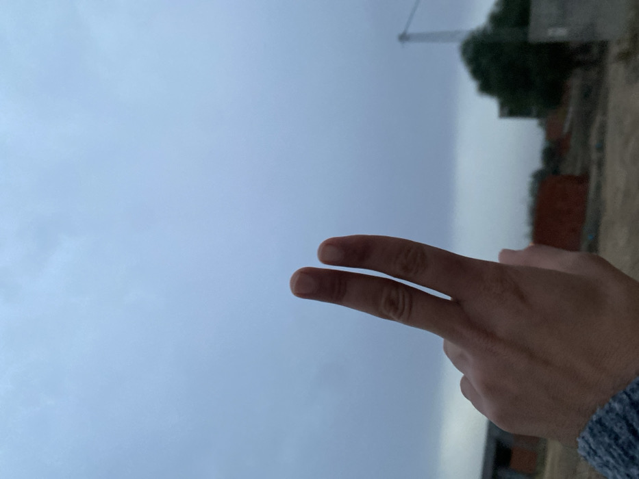 - "The image displays a human left hand in the lower-left foreground, presenting an upward-pointing "V" gesture formed by extended index and middle fingers" by FM-VKGKm1, licensed under CC BY 4.0