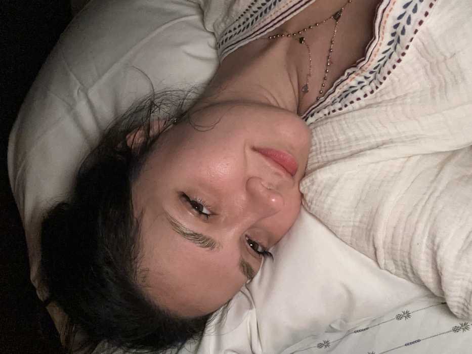 - "A female subject is depicted in a close-up, eye-level shot, lying on her left side with her head resting on a white pillow" by FM-lh4BM2, licensed under CC BY 4.0
