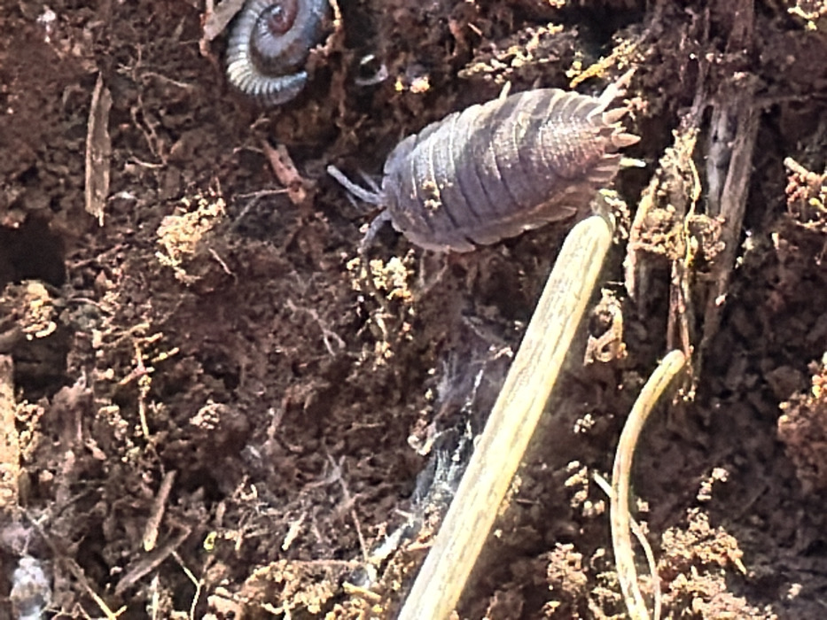 - "A pill bug, also known as a roly-poly, rests on brown soil" by FM-vA9lX2, licensed under CC BY 4.0