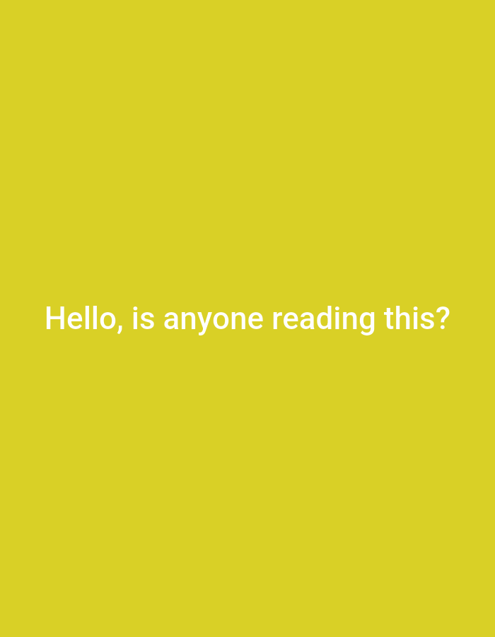 - "The image is a plain yellow background with the white text "Hello, is anyone reading this?" centered on the image" by FM-jlaCz2, licensed under CC BY 4.0