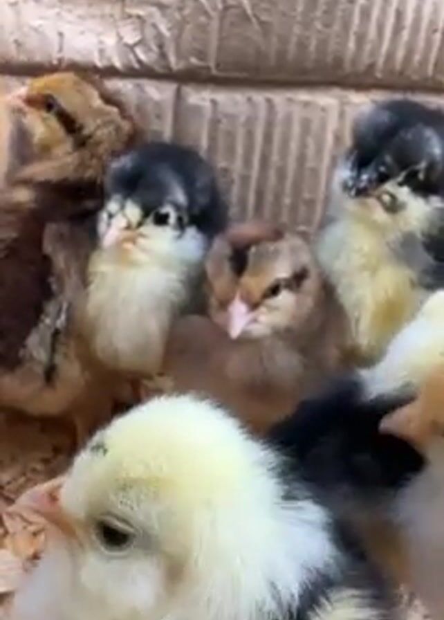 - "close-up of a group of about seven newly hatched chicks huddled together on a bed of wood shavings" by FM-kogZx2, licensed under CC BY 4.0