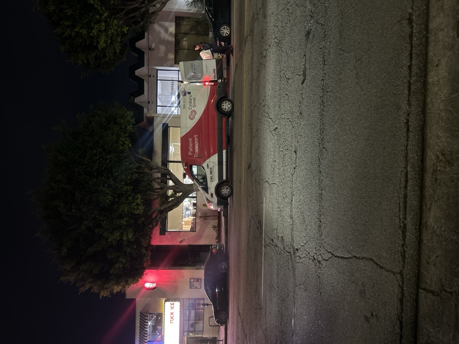 - "A street scene at night features a Cedars Sinai Patient Transport van parked in front of a building" by FM-JqEJc2, licensed under CC BY 4.0