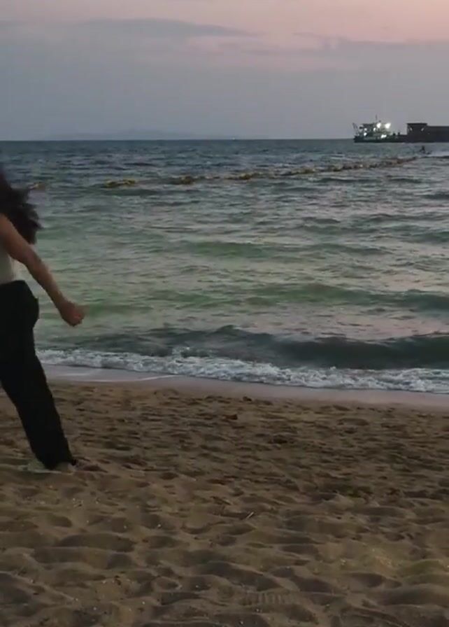 The video opens with a person walking along a beach