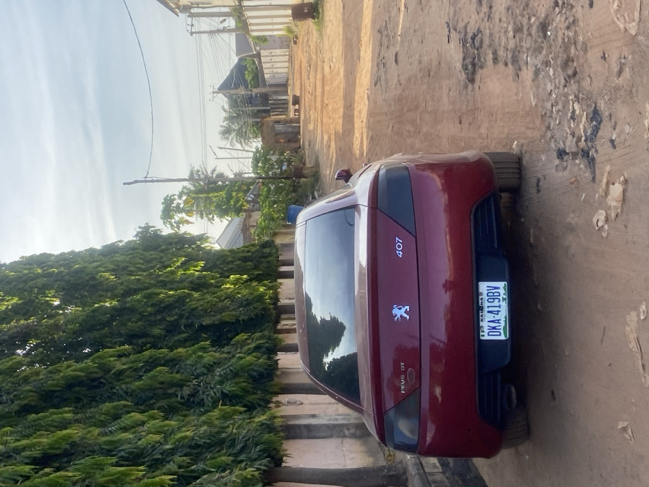 - "A dark red Peugeot 407 GT coupe, displaying a Nigerian license plate "KADUNA DKA-419BV", is parked on an unpaved, reddish-brown dirt path in Sabon Tasha, Nigeria" by FM-h3fT73, licensed under CC BY 4.0