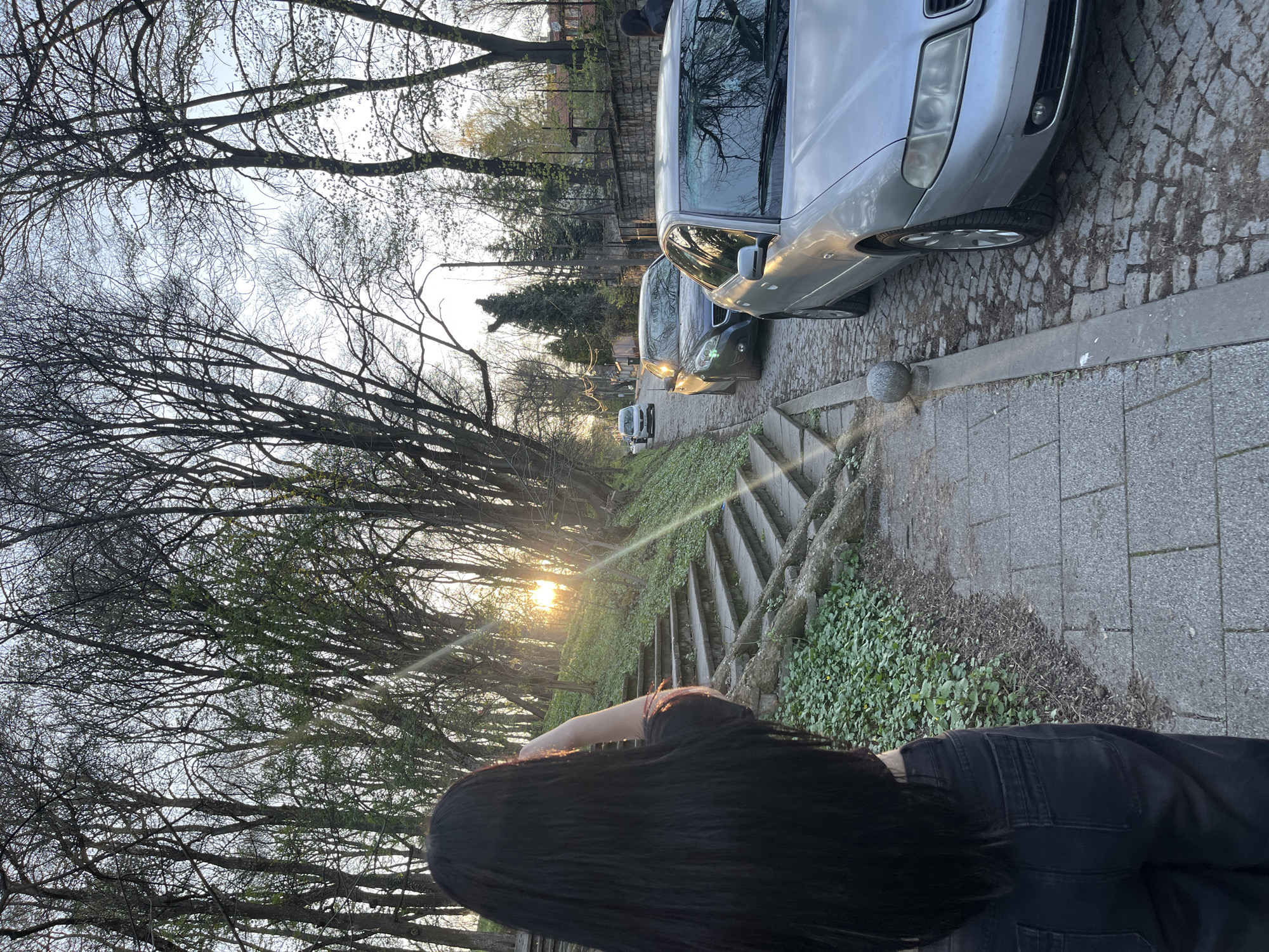 - "A woman with long, dark hair and wearing black jeans and a dark jacket stands with her back to the camera, gazing down a street lined with parked cars and trees" by FM-FJmQc2, licensed under CC BY 4.0
