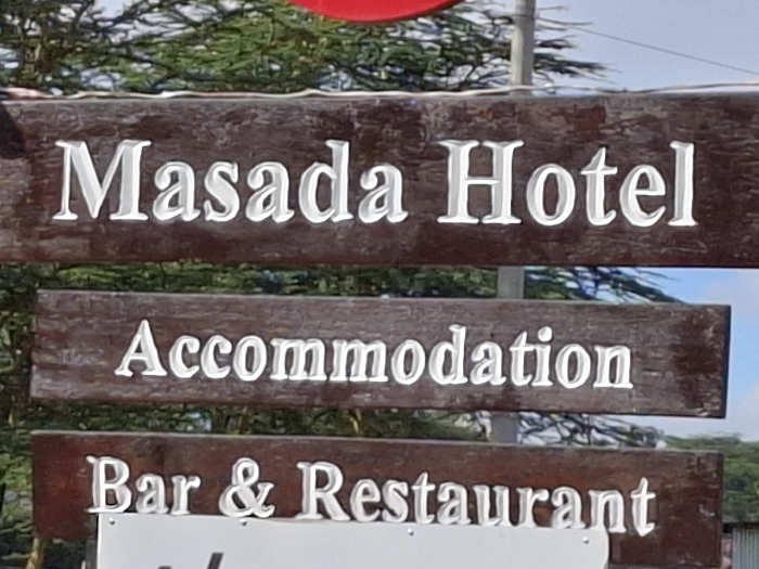 signpost for the Masada Hotel located in Karagita, Kenya, at the coordinates -0