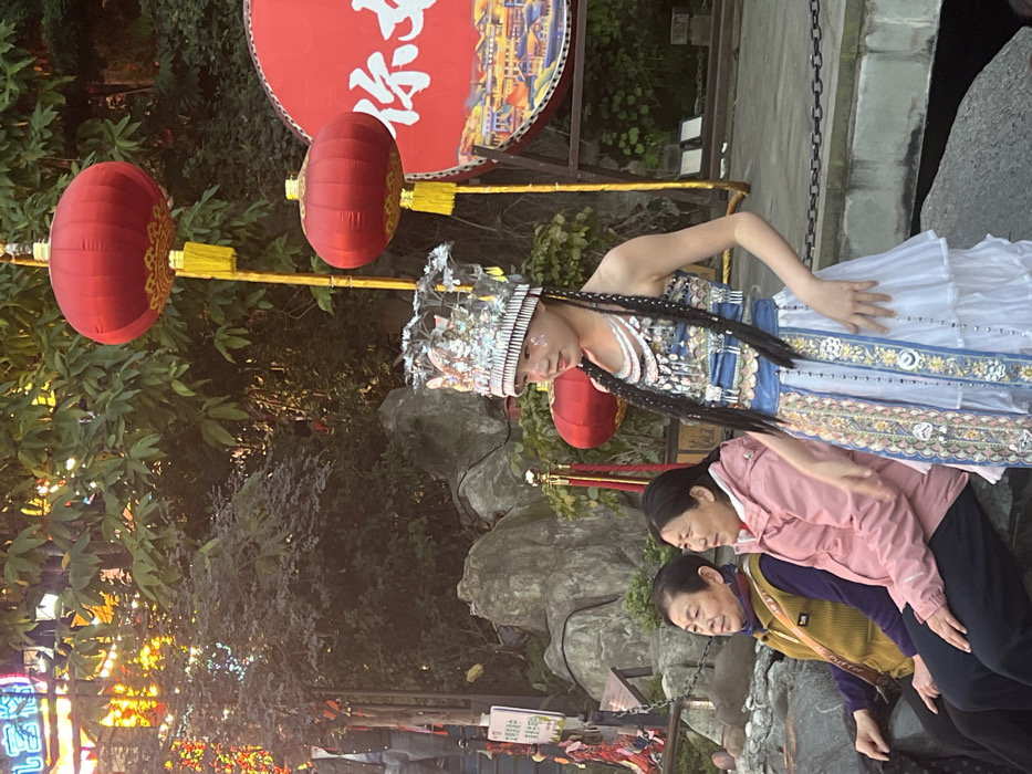 The image captures an outdoor cultural scene within Yuzhong District, China