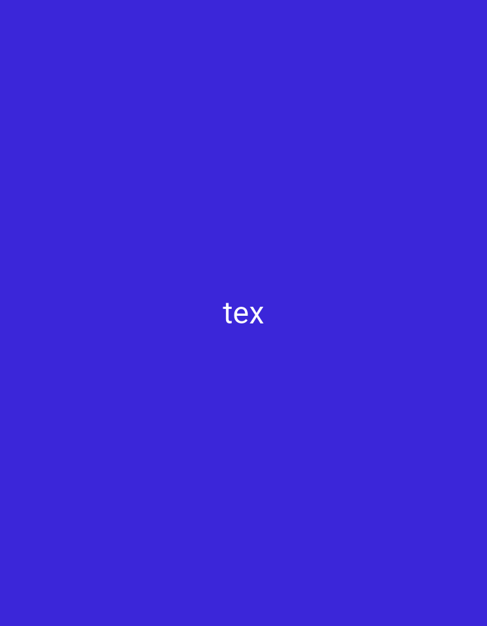- "The scene displays a uniform royal blue background, centrally featuring the white, lowercase, sans-serif word "tex" by FM-Z1ukn2, licensed under CC BY 4.0