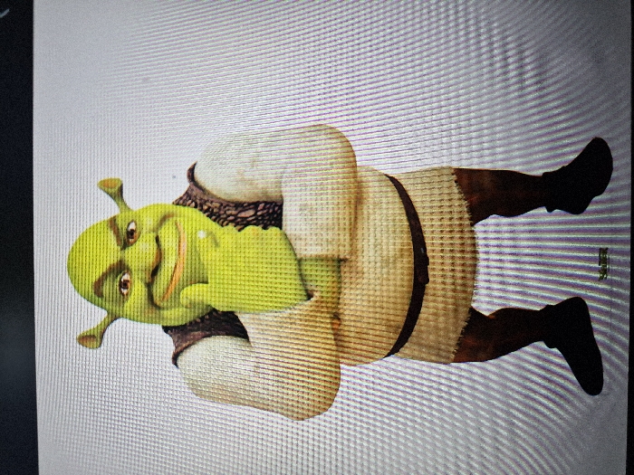 - "The image displays a full-body digital rendering of the animated character Shrek on a screen, captured at an unspecified location within the city of Oeiras, Portugal" by FM-Ed2vf1, licensed under CC BY 4.0