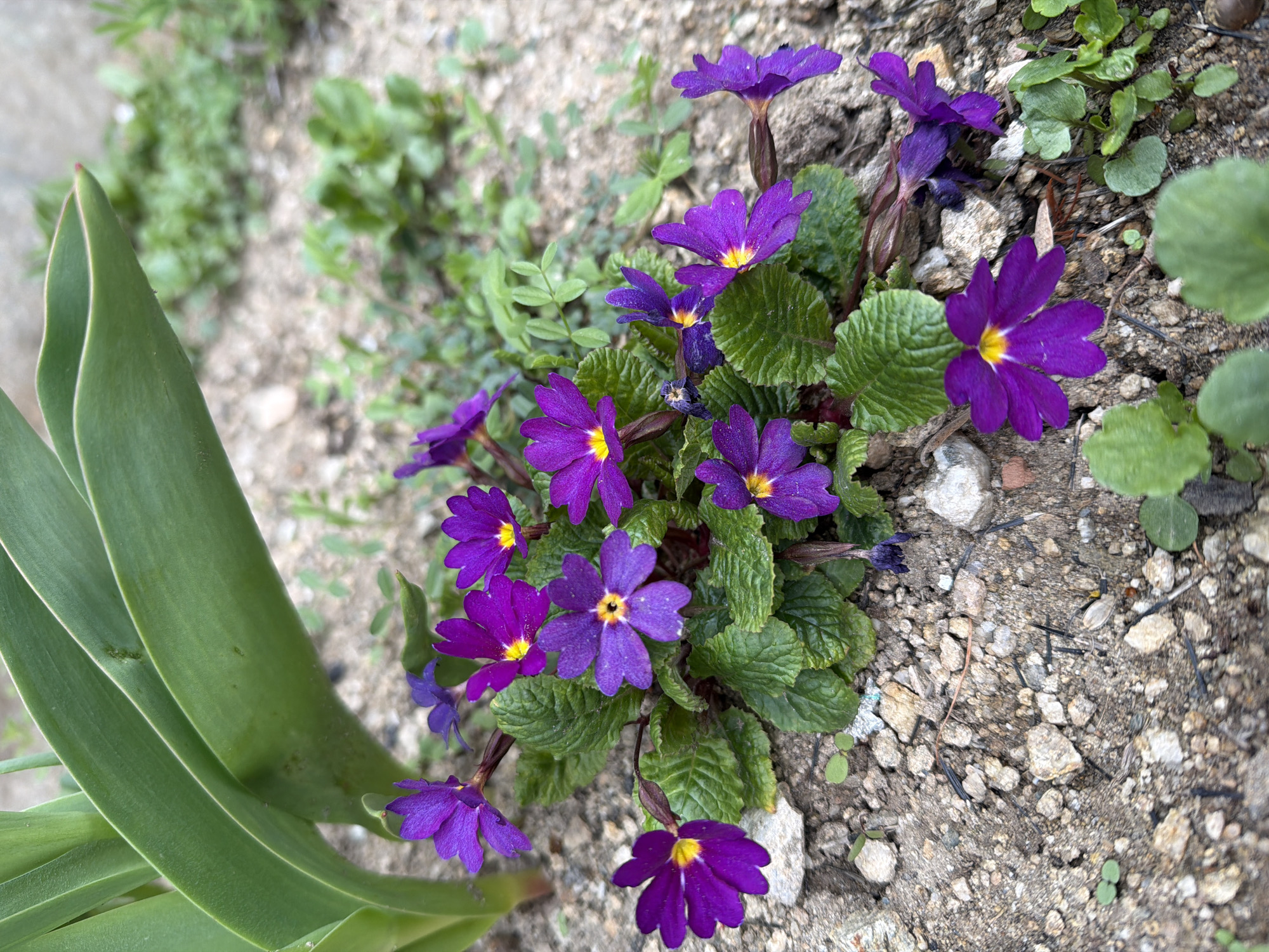 - "A close-up shot in Davidkovo, Bulgaria focuses on a cluster of purple primrose flowers with yellow centers, nestled amongst textured green leaves" by FM-5shlp1, licensed under CC BY 4.0