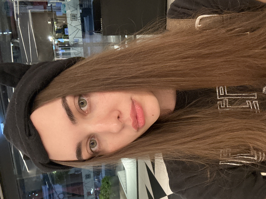 - "A close-up portrait features a young female with light skin, long straight brown hair, and green eyes, looking directly at the camera with a neutral expression" by FM-Vj9yu1, licensed under CC BY 4.0
