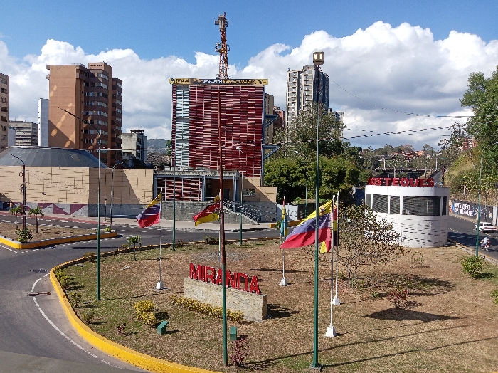 - "The image presents an elevated, wide-angle view of a prominent urban intersection or plaza in Los Teques, Miranda State, Venezuela, under a partly cloudy sky" by FM-I9zNR2, licensed under CC BY 4.0