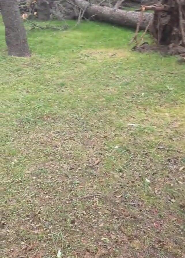 grassy field with several fallen trees