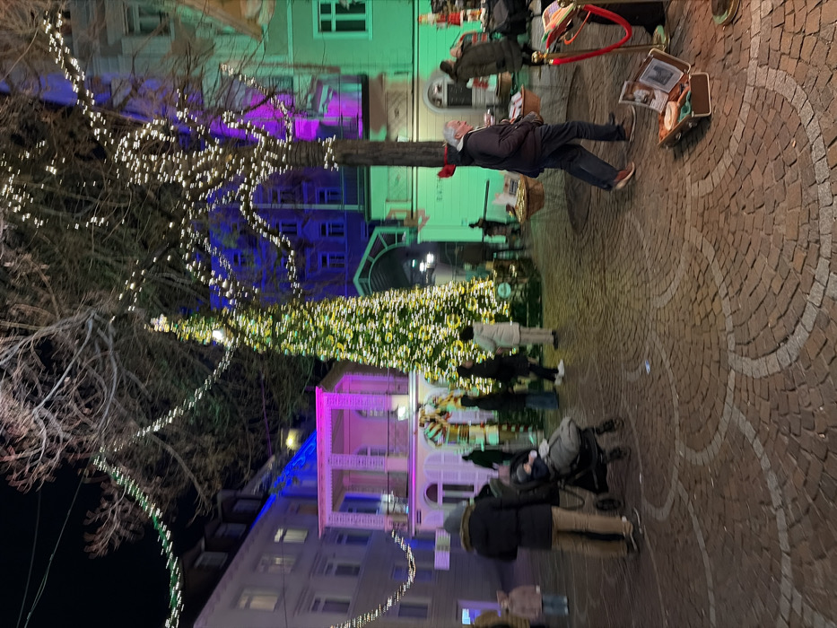 - "A European town square at night features a large Christmas tree adorned with bright lights" by FM-e1pJ93, licensed under CC BY 4.0