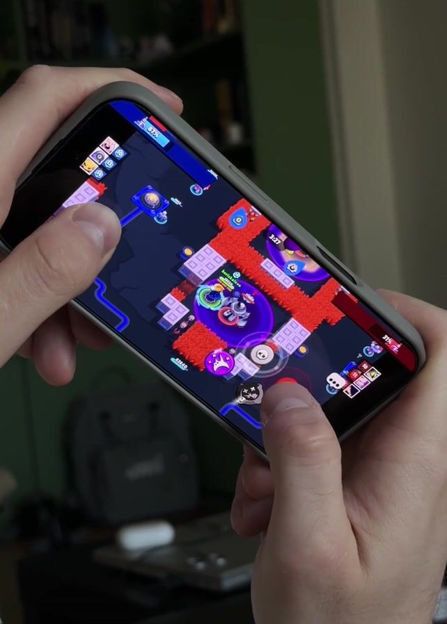 A person is playing a mobile game on their iPhone