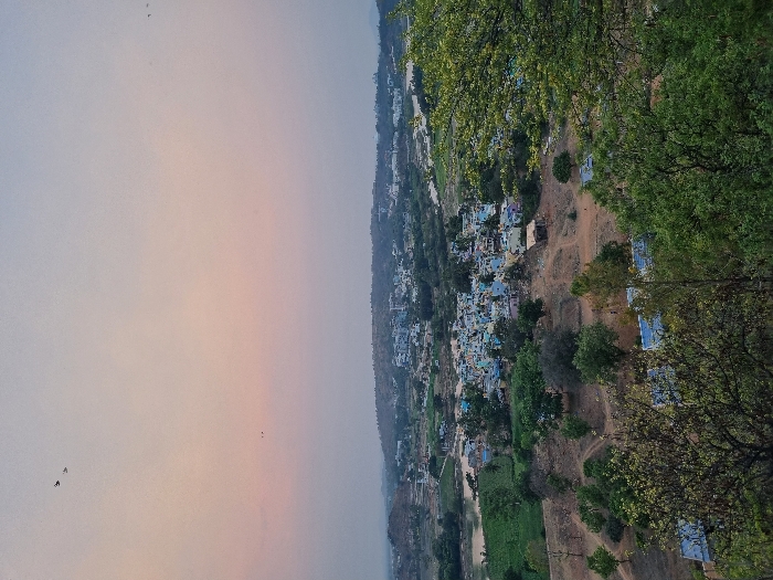 - "An elevated wide-angle view captures the village of Koyalaguttapalli, India, under a sky exhibiting a gradient from pale blue overhead to a soft pink-orange at the horizon" by FM-Qmj6l1, licensed under CC BY 4.0