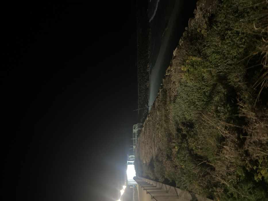 - "Night scene featuring a beach, dark water, and a cliff covered in vegetation" by FM-XZbV72, licensed under CC BY 4.0