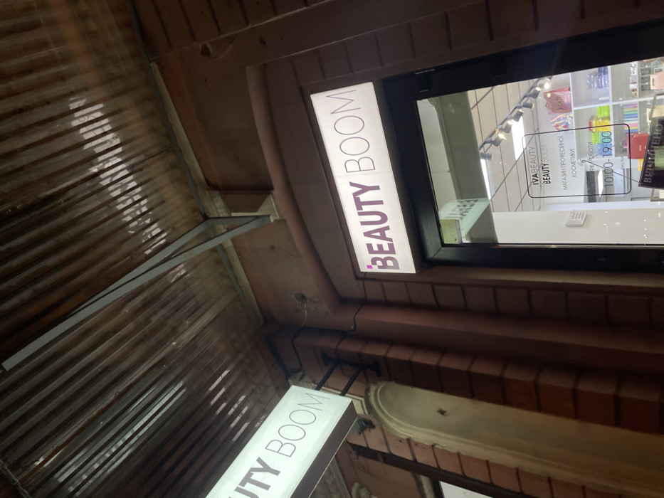 Two illuminated "BEAUTY BOOM" signs are visible, one horizontal and one vertical