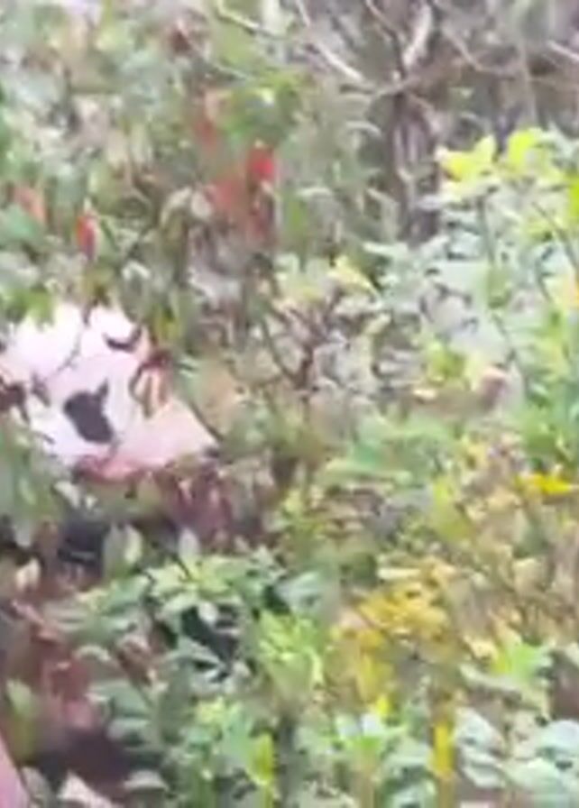 - "The scene, captured through a circular lens, appears to be a view through binoculars, focused on a panda partially concealed within dense foliage" by FM-VYYYD2, licensed under CC BY 4.0