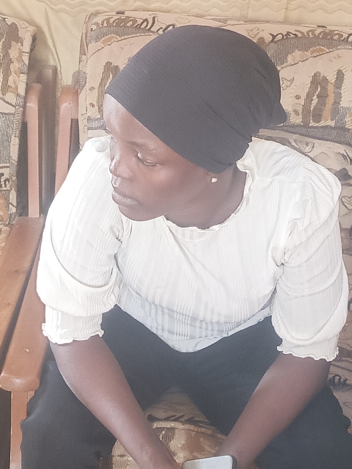 An adult female, identified as being in Akwanga, Nigeria, is depicted seated indoors, angled slightly to the right of the frame