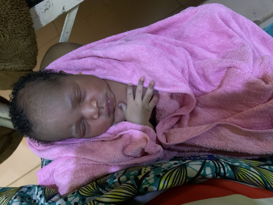 - "A sleeping newborn, wrapped in a pink towel, rests peacefully on a patterned fabric" by FM-Dot6m1, licensed under CC BY 4.0